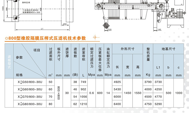 800型橡膠隔膜壓榨式壓濾機(jī)